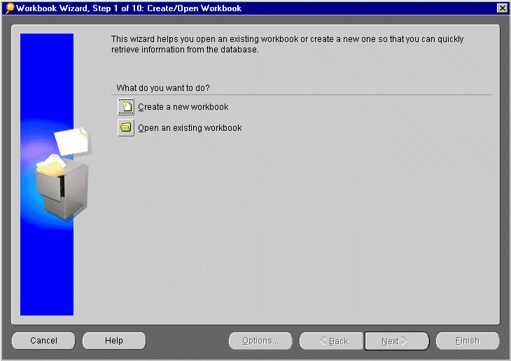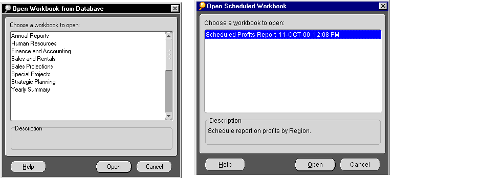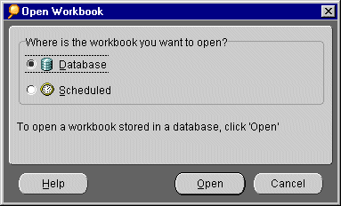 NOTE: If the button for opening a workbook from the database is not available, you can only open scheduled workbooks. Your Discoverer Administrator decides the types of workbooks you can open.