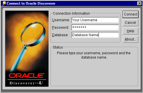 If you have questions about the Discoverer workbook names, whether you have access to them, the location of workbooks on company servers, and so on, see your Discoverer Administrator. The Discoverer Administrator also supplies the passwords and server access instructions that you need to connect to your company's database and open a Discoverer workbook.
