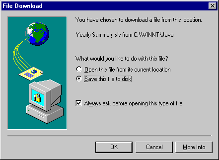Save this file to disk-- you can save the worksheet on your local hard disk as a Microsoft Excel spreadsheet (*.xls).