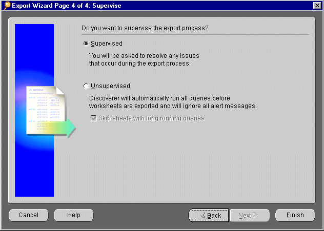 Note: If the worksheets contains parameters, Discoverer will still ask you to choose values for the parameters whether you choose Supervised or Unsupervised.