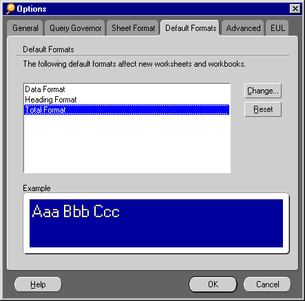 Sometimes, after changing several aspects of a format you want to change it back to the original Discoverer default settings. Instead of changing each format setting individually, you can click the Reset button.