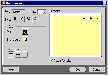 Actual font size--Select this option to display the data in the sample in the font size that you choose from the size drop-down list.